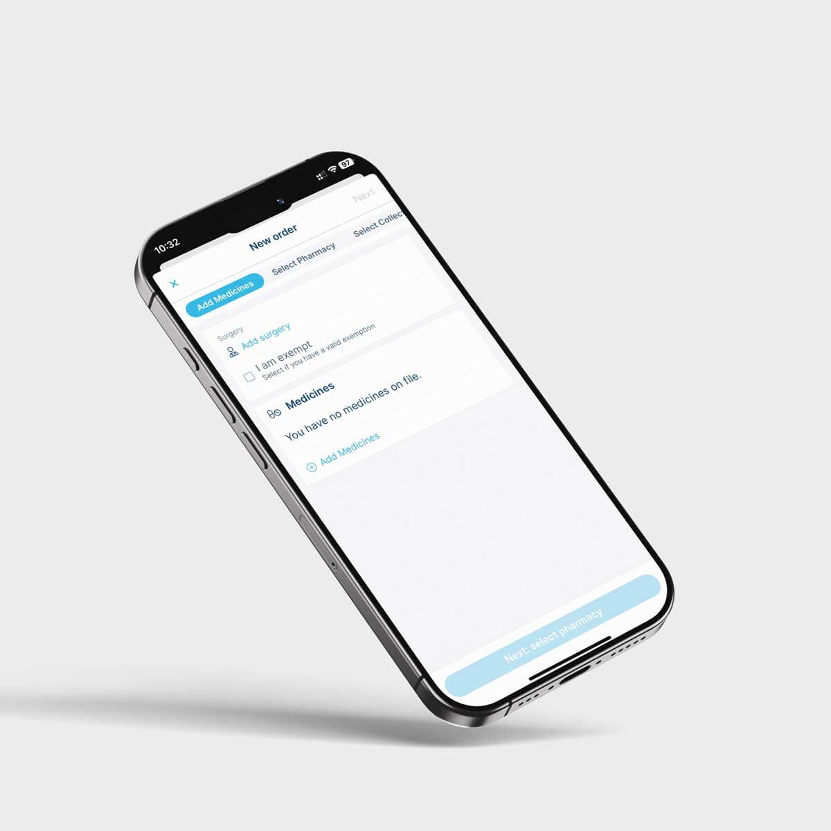 Inside the app, simply tell us the repeat prescriptions you need and the NHS GP you are registered with. We will help you manage your prescriptions online.