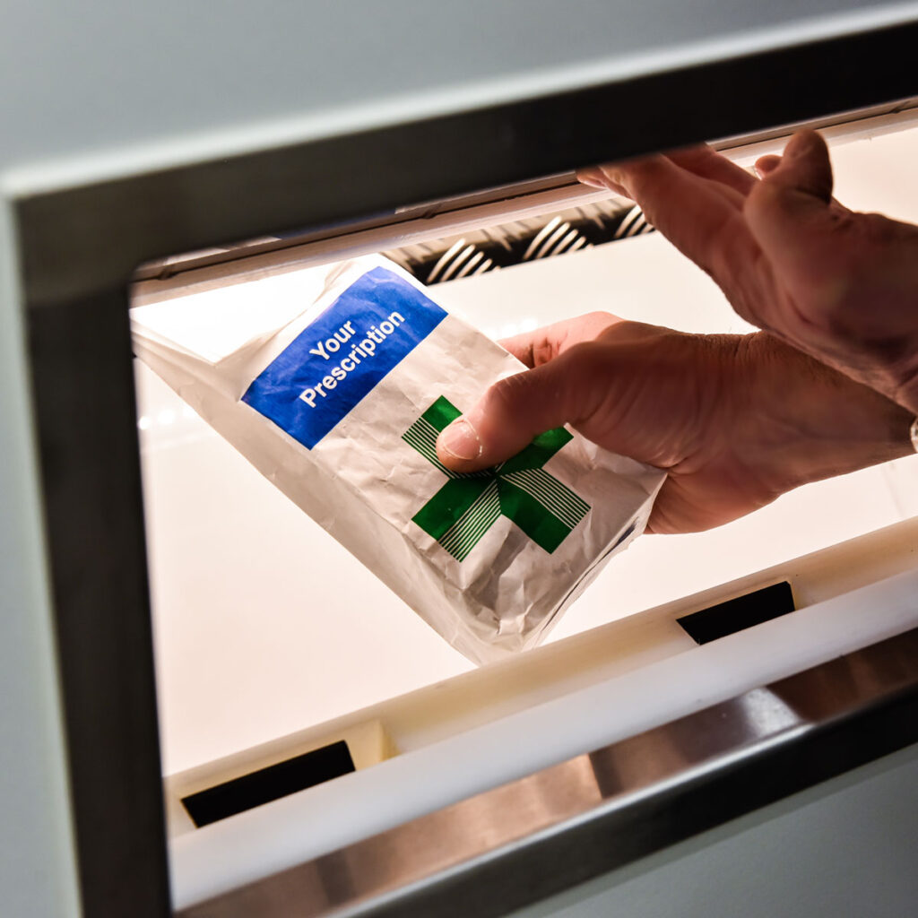 Our Prescription Lockers are safe, prescription collection machines that store your prescription ready for you to collect when it is convenient for you. When you pop to the shops, on your way home from a day at the office or at midnight, if that takes your fancy.